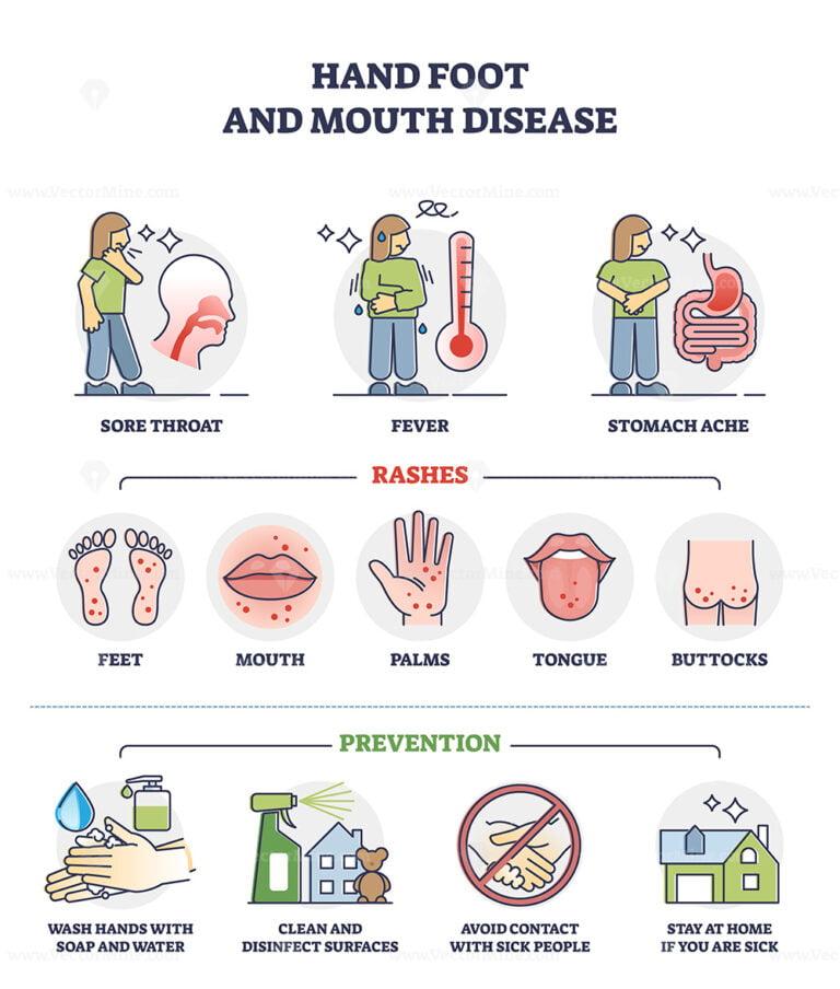 Hand, Foot, and Mouth Disease (HFMD) is a common illness in kids, especially under age 5. It usually causes fever, sore throat, mouth sores, and a rash on the hands and feet, and while it clears up in about a week, it spreads quickly through coughs, sneezes, and even on toys or surfaces. The best protection? Wash hands often, keep surfaces clean, and avoid close contact when someone’s sick. If you're sick, stay home! There’s no vaccine, but most kids recover with rest, fluids, and a little extra care.